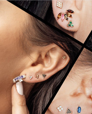 Experience professional piercing in Denver using sterile hollow needle techniques and luxury jewelry designed for comfort and healing. Our piercers specialize in curated ear styling tailored to your anatomy.