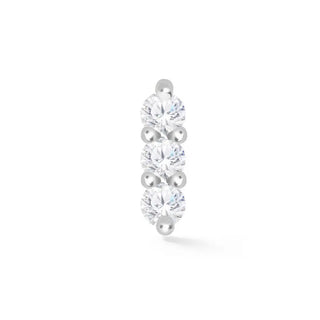 Let's explore helix earrings. Much like the tragus, there is nothing worse than an earring that is far too large to sit in this space. The helix is a smaller surface area residing close to the edge of your ear. Because of this, it’s important to play with length rather than width. A chunky, wide earring will look disproportionate and distract from the rest of the ear.