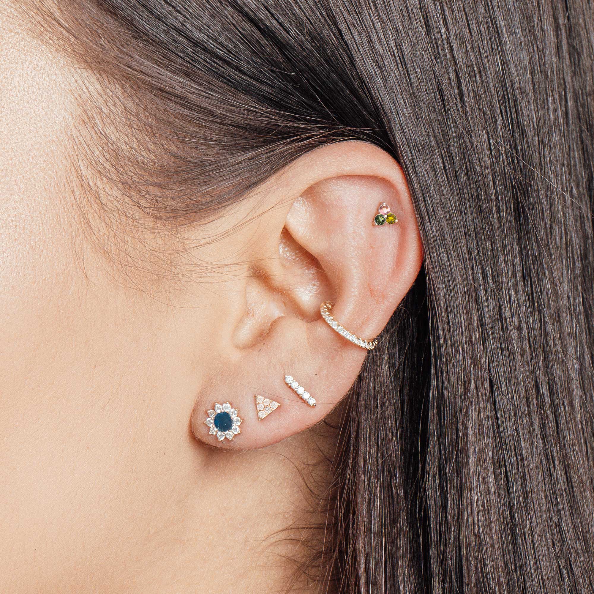 FlatBack Multi Tourmaline 14K Yellow Trinity | The Wynning Studs