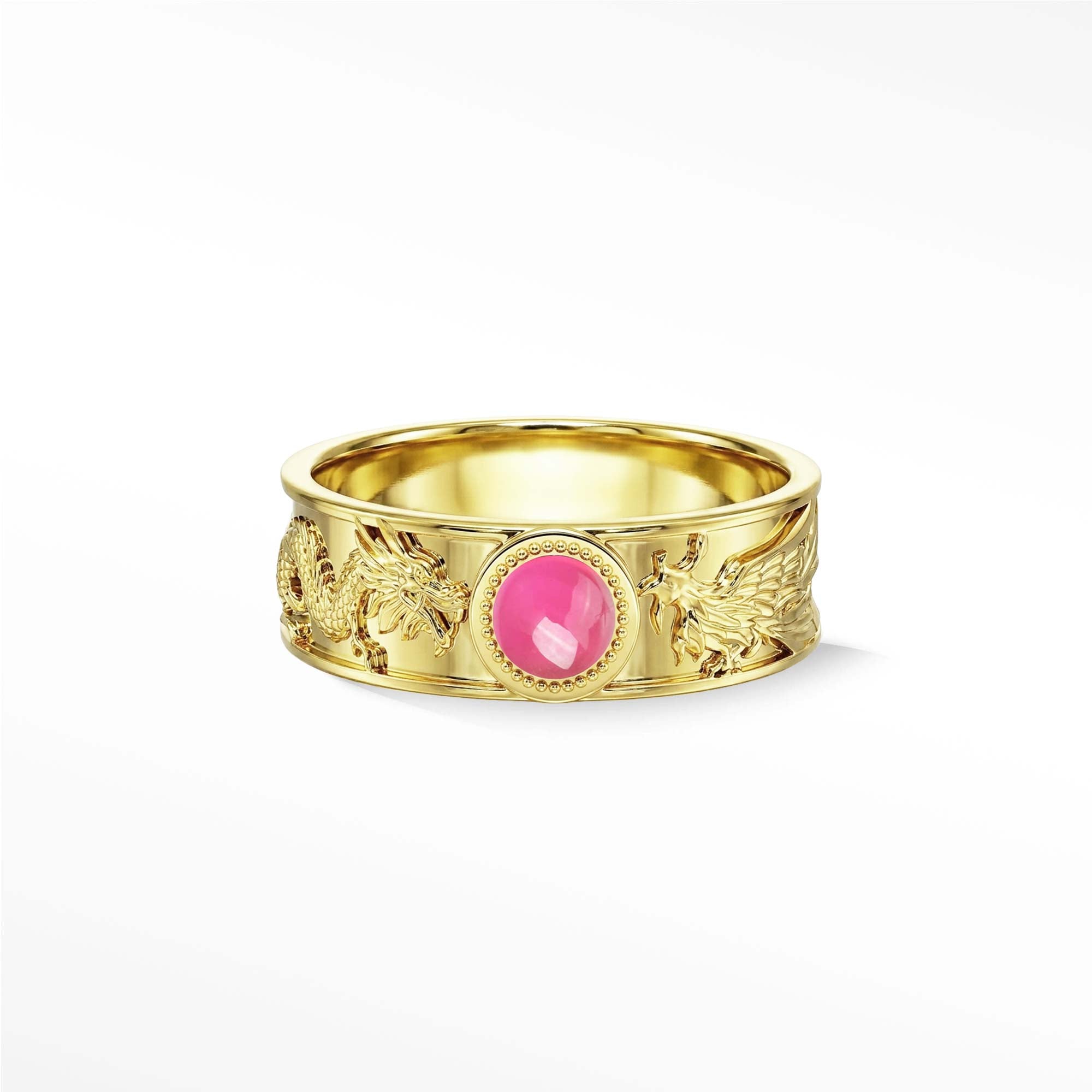 Dragon Phoenix Ruby Ring 14K Gold – Natural Ruby Ring, Bold Design