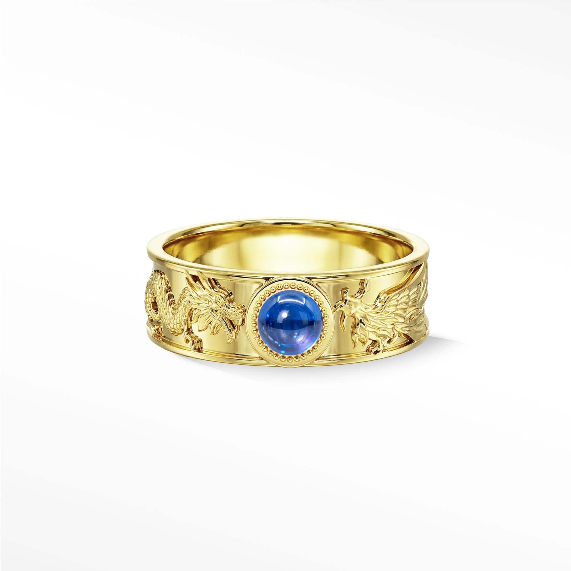 Dragon Phoenix Sapphire Ring 14K Gold – Elegant Ring for Engagement