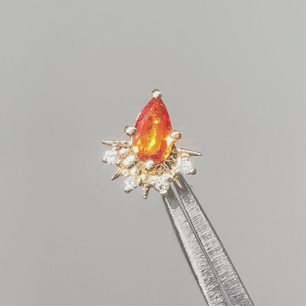 Flat Back Earrings Natural Padparadscha Sapphire | 14k Yellow Gold