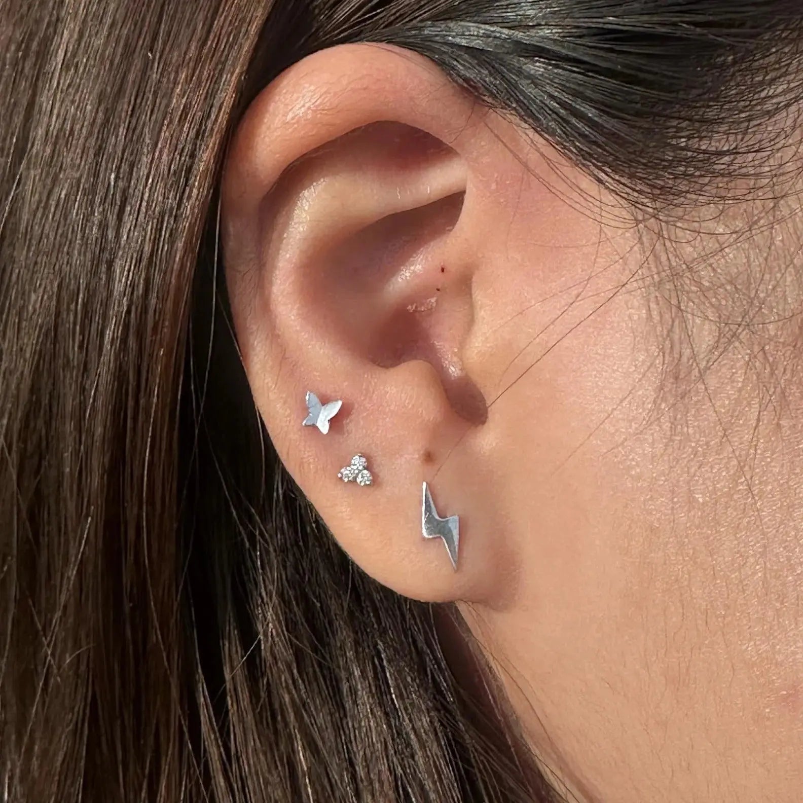 Flat Back Earrings Trinity Diamond 14K White | The Wynning Studs