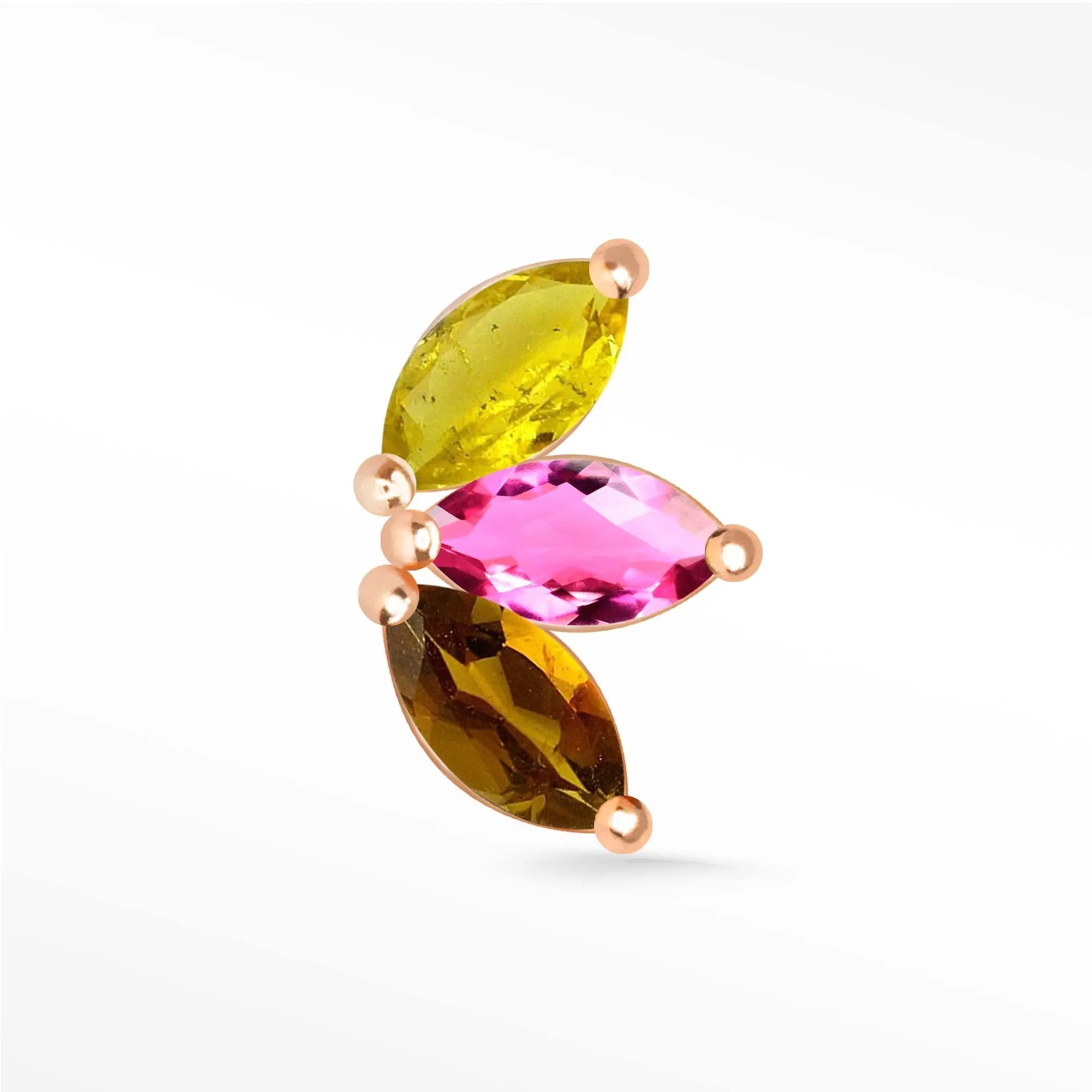 Shaped like a delicate Baby Lotus, this 14k rose gold flat back earring features marquise-cut multi tourmalines arranged as softly blooming petals. The natural mix of warm hues adds a refined touch of color, while the smooth flat back sits comfortably for everyday wear. Subtle yet expressive, it brings an effortless elegance to any ear stack or stands beautifully on its own.