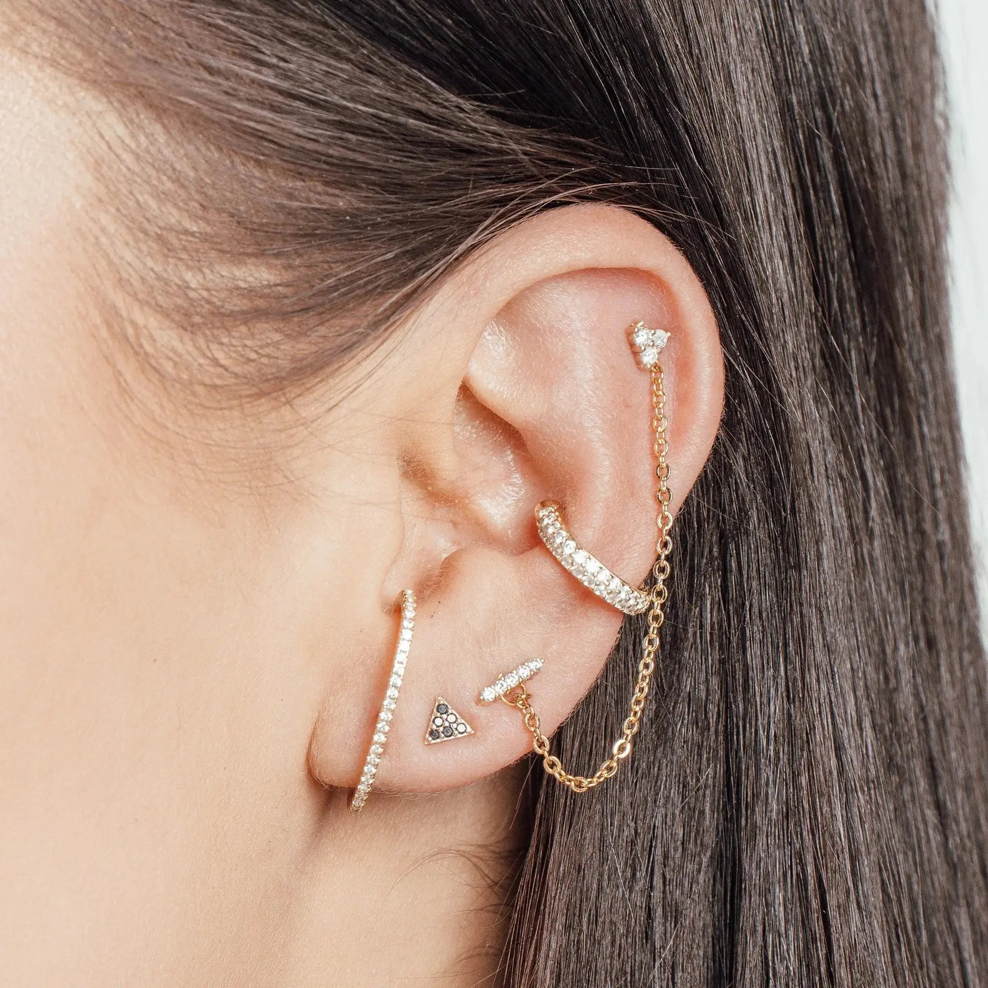 Cartilage Hoop Earring Diamond 18G Lightning Bolt 14K Yellow Gold - Edgy & Elegant Body Jewelry