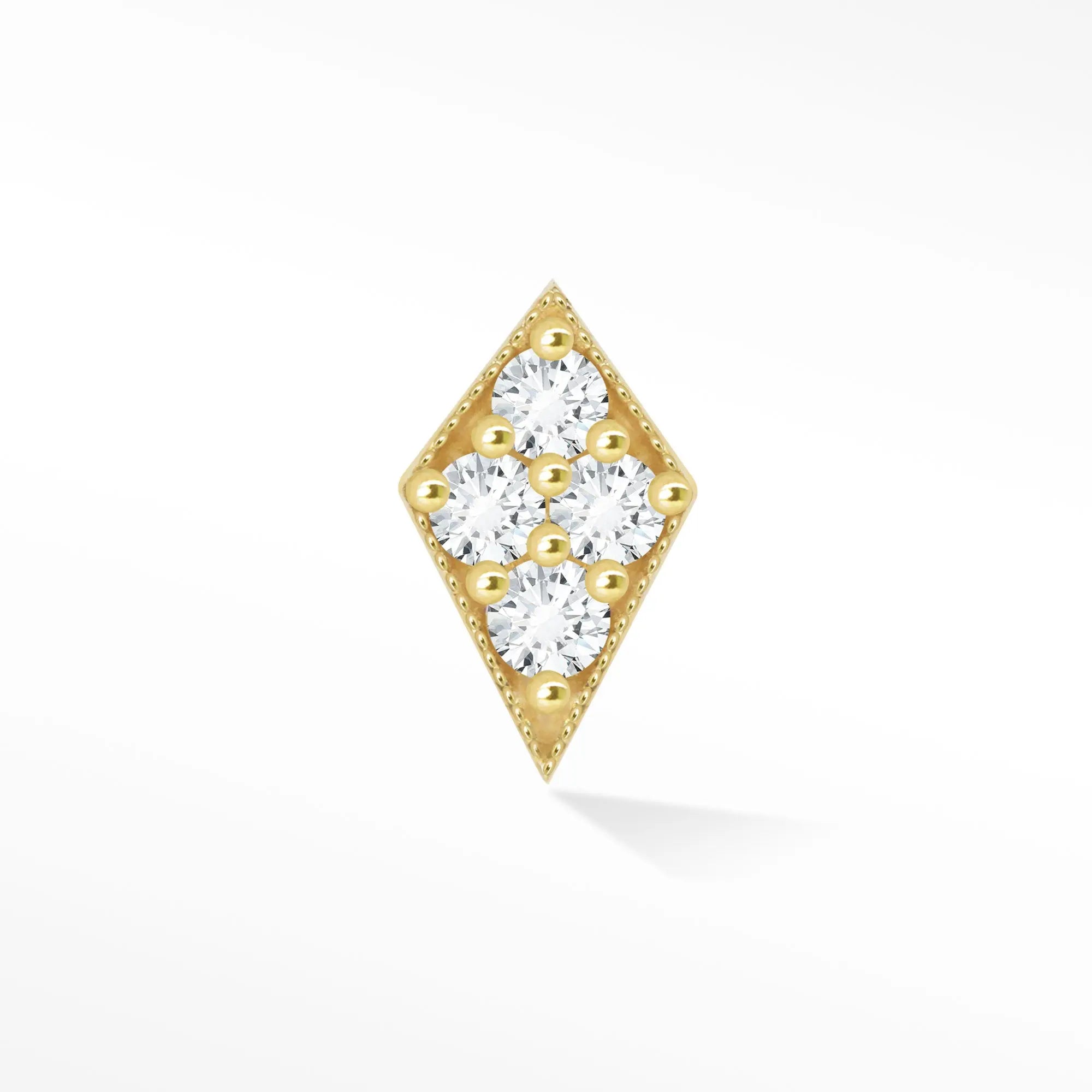 Defined by a refined kite-shaped silhouette, these Flat Back Earrings Diamond Kite 14K Yellow Gold bring together modern geometry and luminous sparkle. Crafted in solid 14K yellow gold, the design is accented with brilliant lab-grown diamonds that catch the light beautifully, while the smooth flat back ensures a secure, comfortable fit for effortless everyday wear. Minimal yet striking, this piece adds a polished, contemporary touch to any curated ear look.