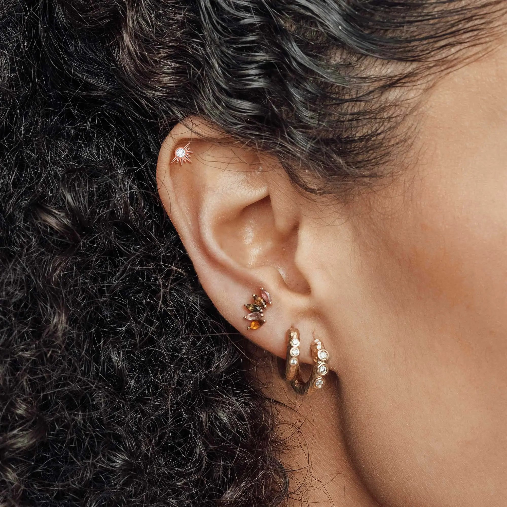 Polished to a radiant finish, the 14k white gold setting highlights the diamonds’ brilliance and intricate design. Its simple yet unique silhouette offers understated sophistication that pairs beautifully with other jewelry pieces. Whether worn alone or layered, this Flat Back Earring Diamond Demi Star 14k White Gold adds a subtle sparkle and modern elegance to any look.