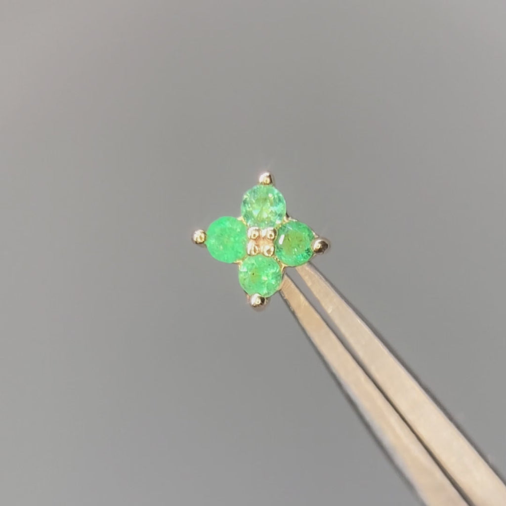 Add a touch of luxurious charm to your look with our Flat Back Earring Emerald Clover 14K Yellow Gold. This exquisitely crafted 14K yellow gold piece features an elegant four-leaf clover design, beautifully adorned with vibrant emeralds. It's a chic and unique symbol of luck, perfect for adding radiance and style to any collection. Designed for comfort and sophistication, this flat back earring ensures a secure fit, making it an ideal choice for everyday wear while elevating your ensemble with timeless beauty and modern flair.