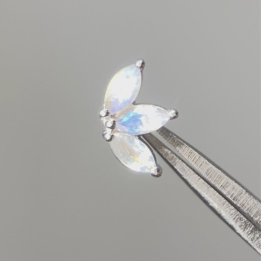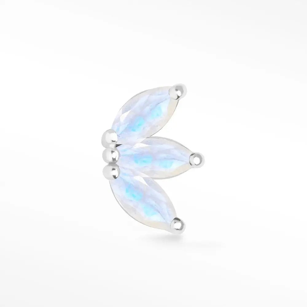 Flat Back Earrings Natural Moonstone Baby Lotus 14k White Gold