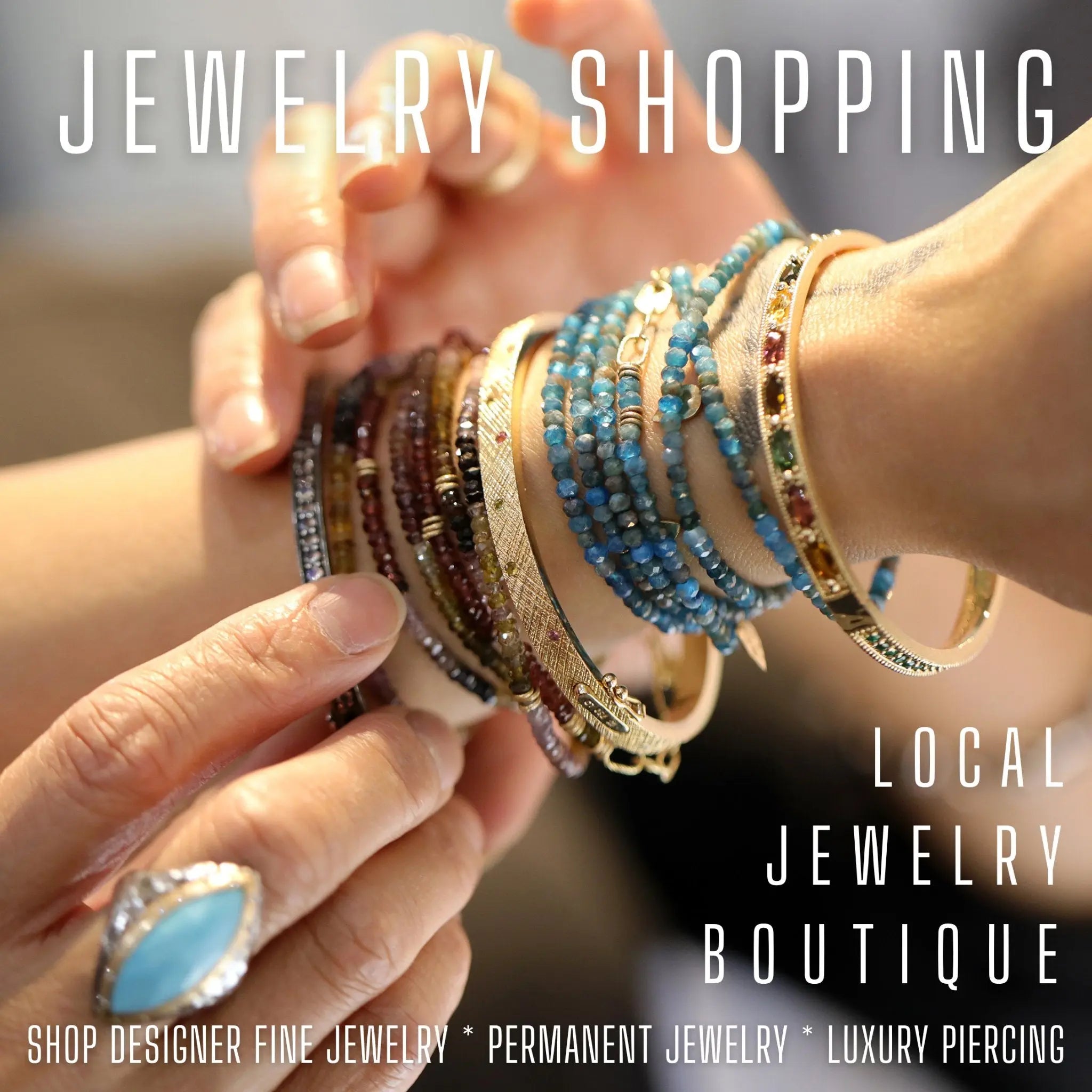 At our Denver location, we are proud to offer an exquisite selection of jewelry pieces, including bracelets, necklaces, earrings, bespoke piercing jewelry, permanent jewelry and more. Whether you're looking for a classic piece to add to your collection or something more unique and one-of-a-kind, we have something for everyone.