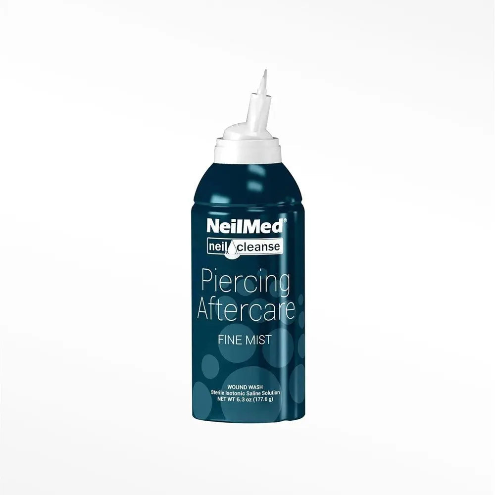 NeilMed Piercing Aftercare allows users to spray a saline solution directly onto their piercing rather than soak it in a saline bath or having to use a cotton ball. This creates a more sterile application process and offers a cleaning solution that makes it easy to clean surface piercings like cartilage piercings. Sprays in any position, including when inverted.