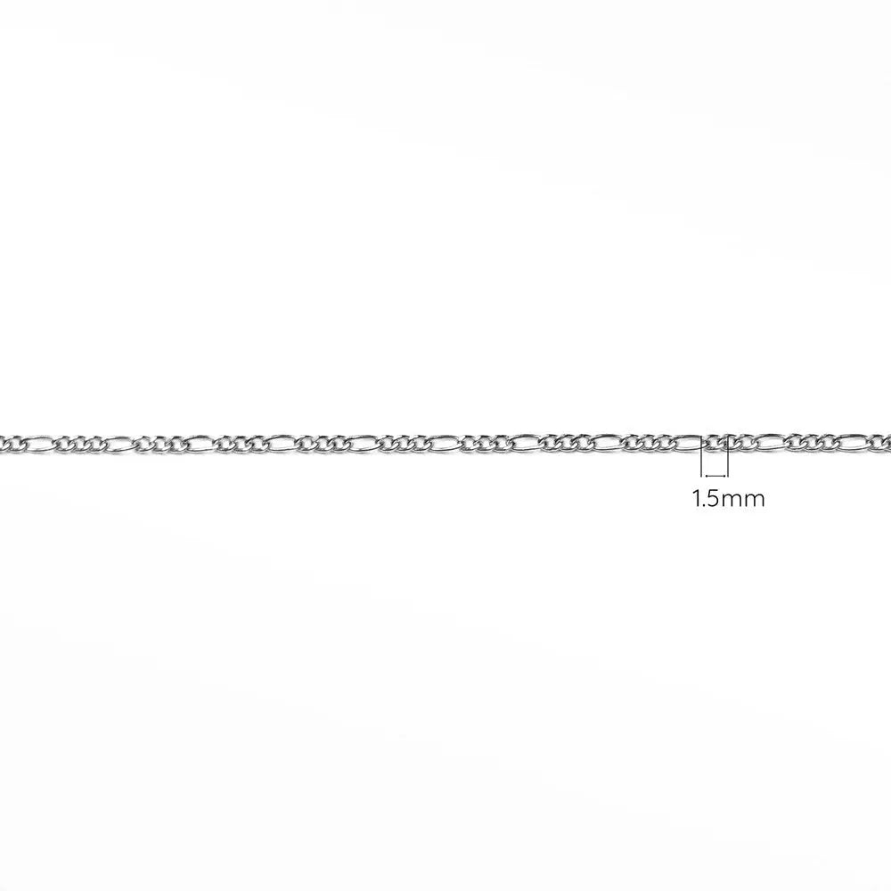 This white gold anklet features a delicate Figaro diamond-cut pattern that catches the light beautifully, adding a subtle sparkle with every movement. Its lightweight yet sturdy construction makes it ideal for daily wear, from casual outfits to elegant evening attire. Designed with comfort and permanence in mind, it symbolizes a connection that lasts - an anklet you’ll never want to take off.